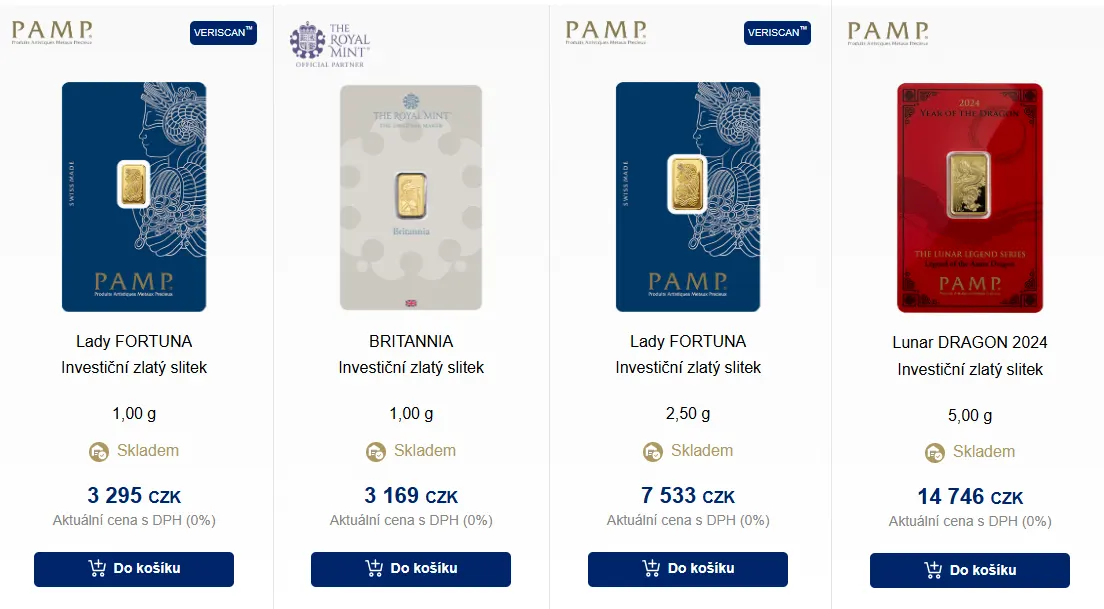 Nákup fyzického zlata a stříbra probíhá přes systém IBIS InGold, kde si sami zvolíte produkty i formu investice: